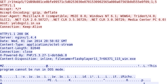 First payload request, this one based on the MSIE CVE-2013-2551 exploit: