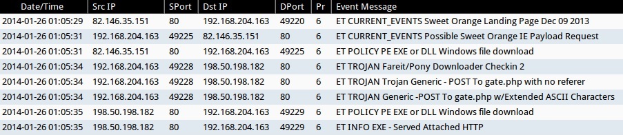 - 2014-01-26 01:05:35 UTC - 198.50.198[.]182 port 80 - ET POLICY PE EXE or DLL Windows file download