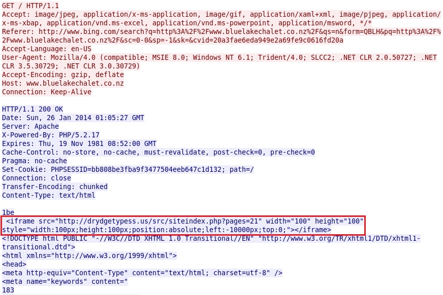 - 2014-01-26 01:05:27 UTC - 113.20.9.49 port 80 - www.bluelakechalet[.]co[.]nz - GET /