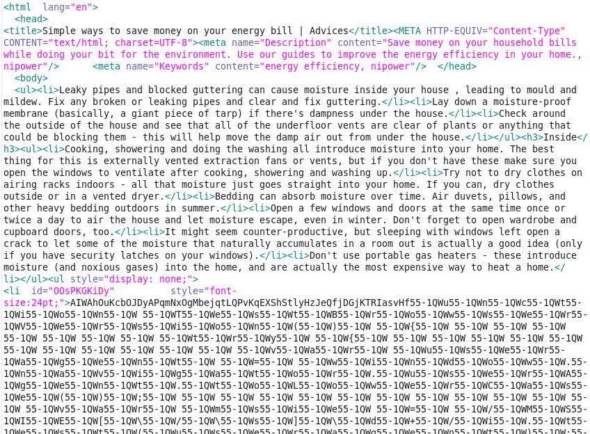The HTML is gzip compressed in Wireshark's TCP stream, so we'll have to extract it from the pcap using: File --> Export Object --> HTTP