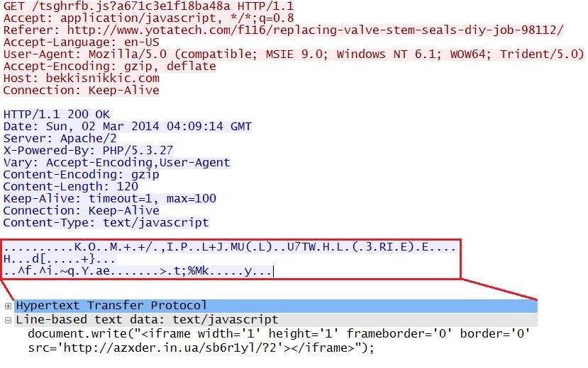 - 2014-03-02 04:14:07 UTC - 190.123.47[.]198:80 - ET CURRENT_EVENTS DRIVEBY Redirection - Forum Injection