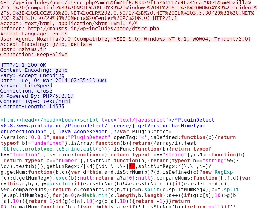 Hello EK prepares delivery of Java exploit - mahsms[.]ir/wp-includes/pomo/dtsrc.php?a=h2