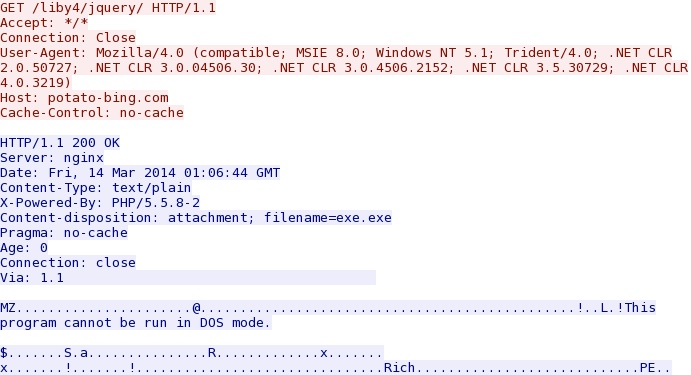 First post-infection callback for another EXE - potato-bing[.]com/liby4/jquery/