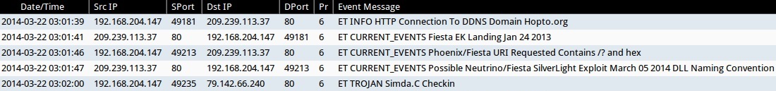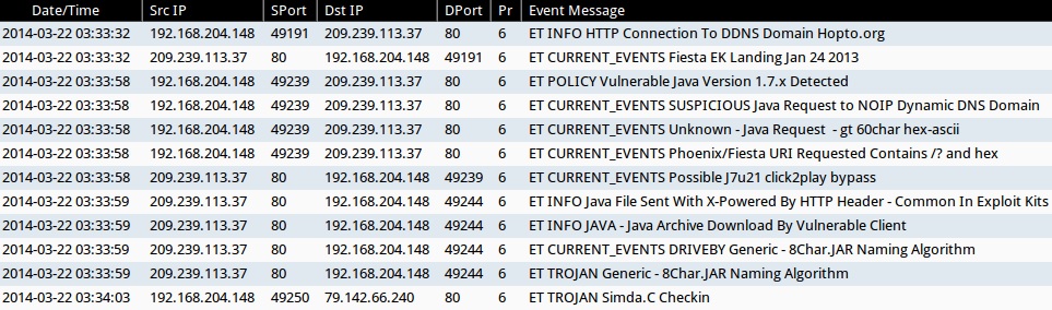 ALERTS FOR THE FIESTA EK JAVA TRAFFIC (from Sguil on Security Onion)
