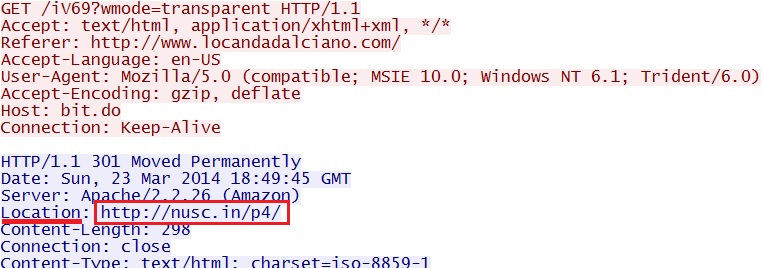 First redirect by iframe in page from compromised website - bit[.]do/iV69?wmode=transparent