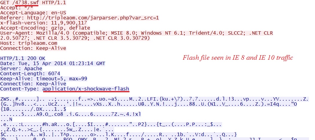 FLASH FILE SEEN IN THE IE 8 AND IE 10 TRAFFIC