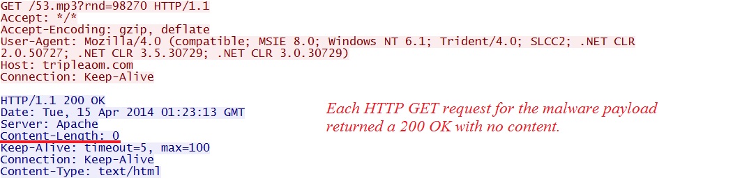 - 01:24:23 UTC - 83.169.30[.]95:80 - tripleaom[.]com - GET /85654092.mp3?rnd=34586