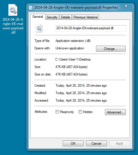 File name: 2014-04-28-Angler-EK-malware-payload.dll