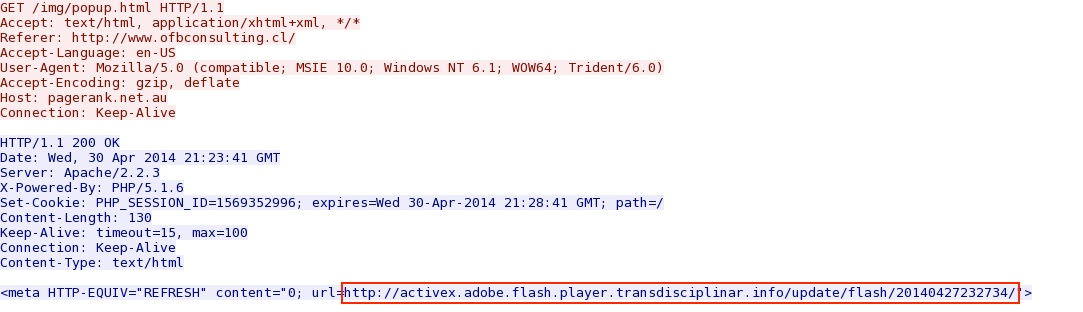 - 21:23:42 UTC - 87.98.146[.]123 - activex.adobe.flash.player.transdisciplinar[.]info - GET /update/flash/20140427232734/160x41_get_flashplayer.gif