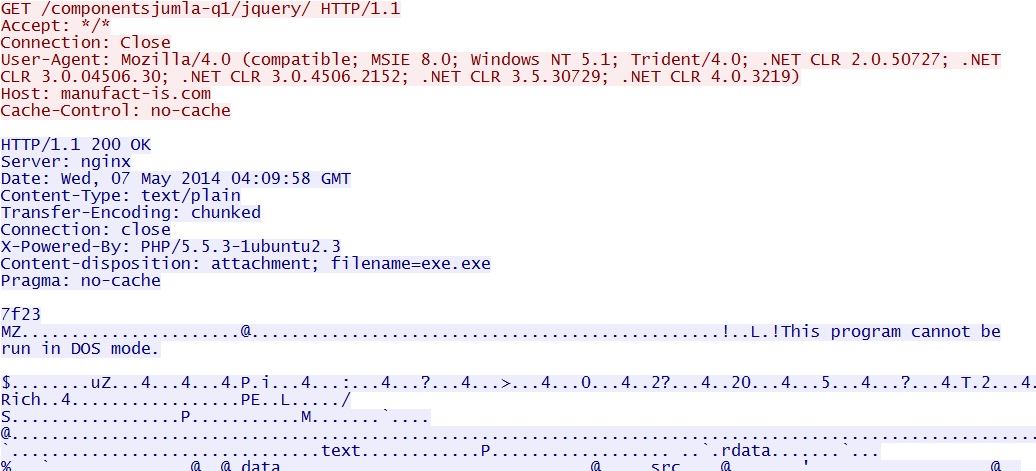 MSIE CVE-2013-2551exploit delivers EXE payload: