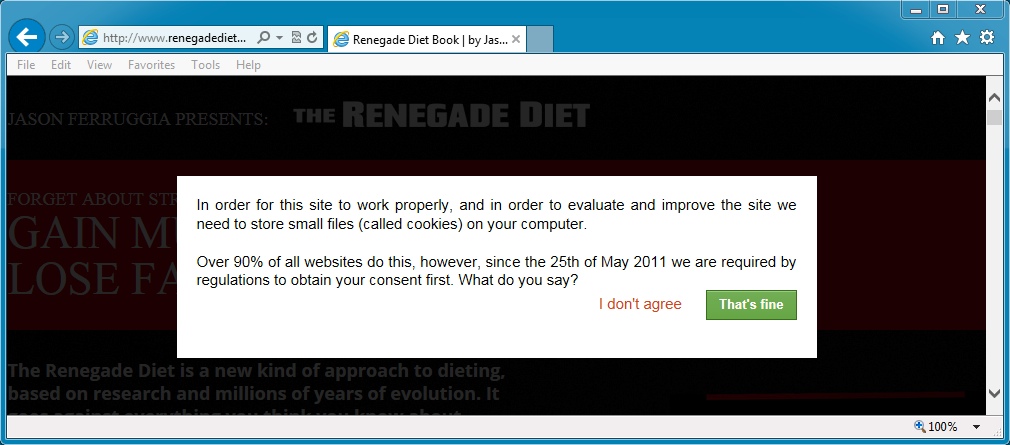 - If a compromised website decides your IP and user-agent is acceptable, you'll see a pop-up window warning about the site using cookies.