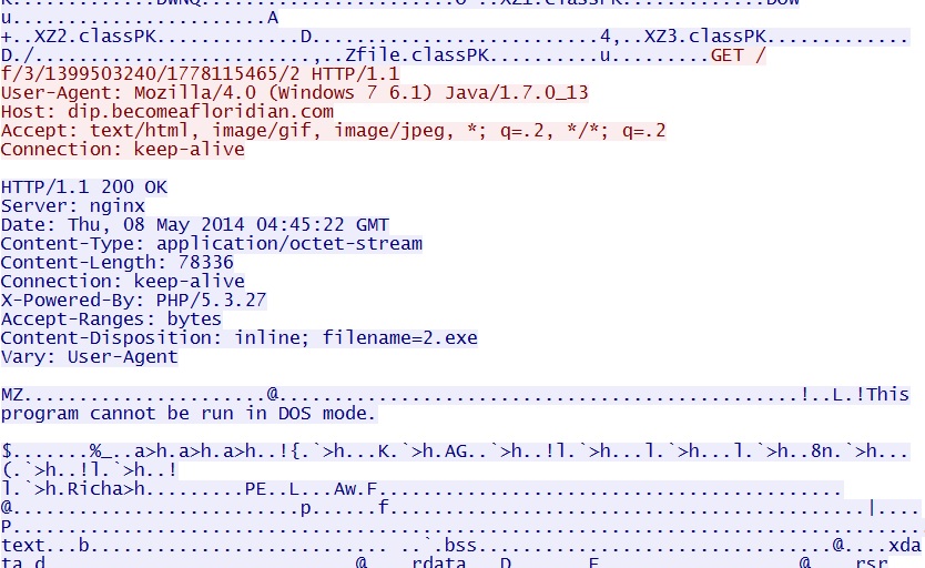- 2014-05-08 04:45:12 UTC - 146.0.43[.]86:80 - ET POLICY Java EXE Download