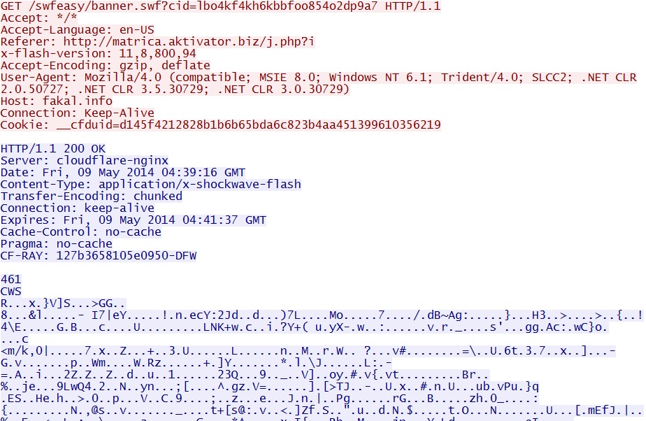 - 04:39:16 UTC - fakal[.]info - GET /swfeasy/banner.swf?cid=lbo4kf4kh6kbbfoo854o2dp9a7