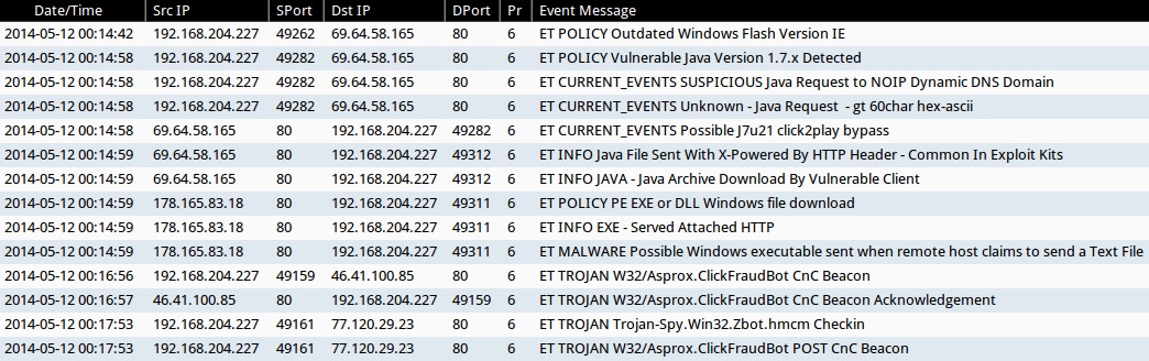 - The Java, Silverlight, and Flash exploits are the same as the blog entry I did for Fiesta EK on 2014-05-09 (link).