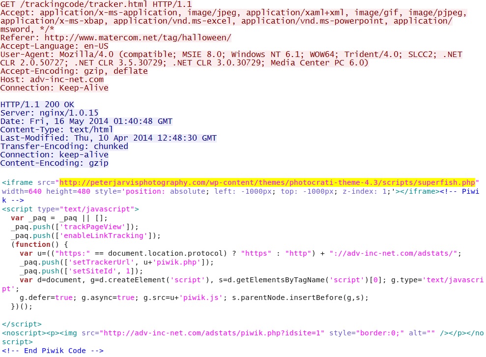 - 01:52:06 UTC - www.matercom[.]net - GET /tag/halloween/
