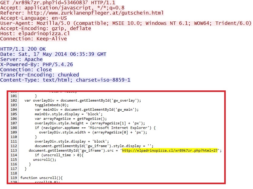 Here's a path from the compromised website to the malware download: