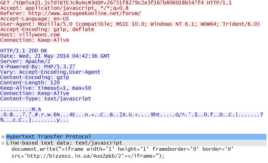 - 04:44:57 UTC - www.autogeekonline[.]net - GET /forum/