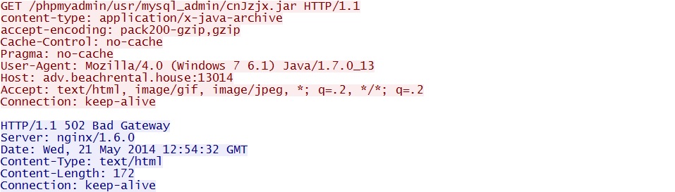 One of the HTTP GET requests for a Java exploit... These also return a 502 Bad Gateway response: