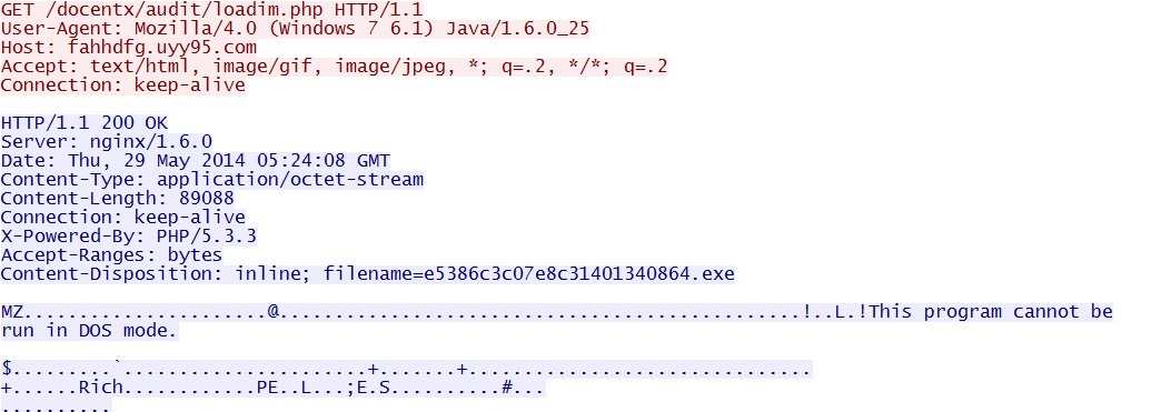 - 05:23:57 UTC - 37.230.117[.]89:80 - fahhdfg.uyy95[.]com - GET /docentx/audit/javaim.php