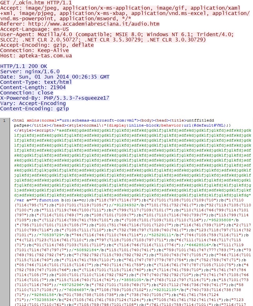 - 00:26:35 UTC - 89.184.75[.]186:80 - apteka-tas[.]com[.]ua - GET /_okin.htm
