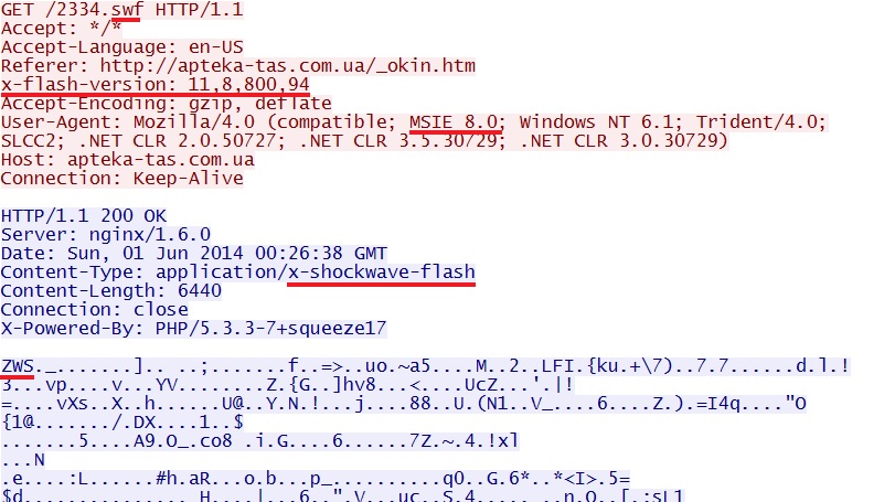 - 00:26:38 UTC - 89.184.75[.]186:80 - apteka-tas[.]com[.]ua - GET /2334.swf