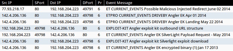 - 142.4.206[.]136:80 - ETPRO CURRENT_EVENTS DRIVEBY Angler EK Landing May 22 2014 (sid:2808076)