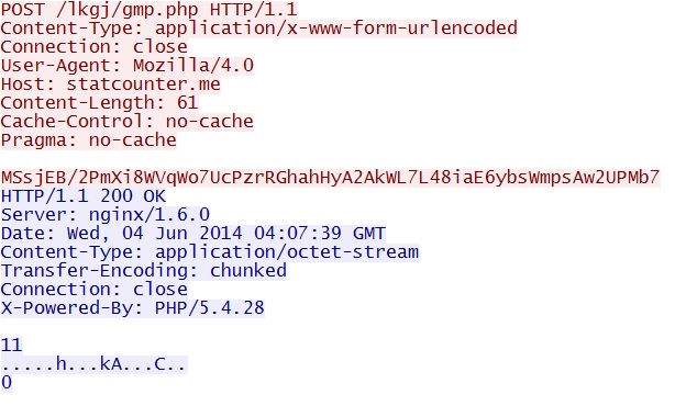 - 46.165.241[.]244 port 80 - statcounter[.]me - POST /lkgj/gmp.ph