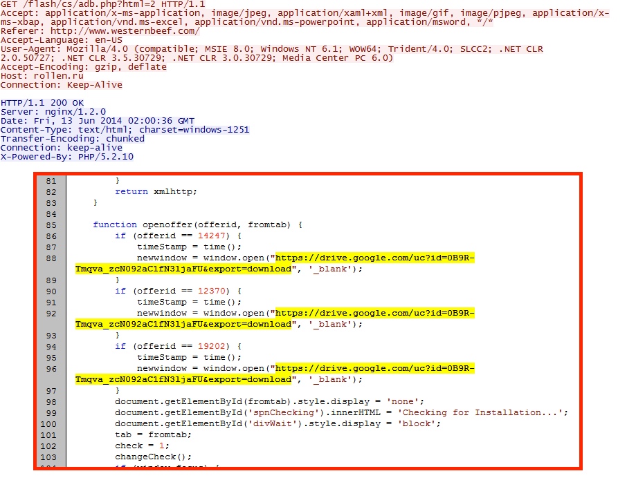 - 2014-06-13 - fake Flash updater hosted on Google Drive