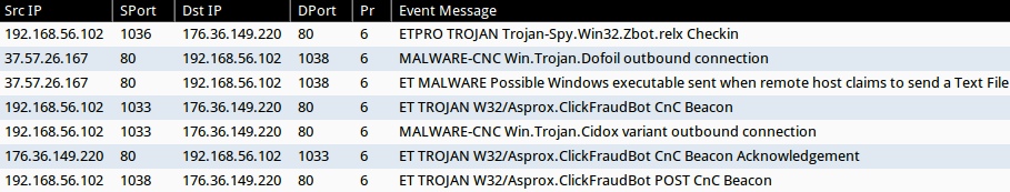 - 176.36.149[.]220:80 - ET TROJAN W32/Asprox.ClickFraudBot CnC Beacon Acknowledgement (sid:2018097)
