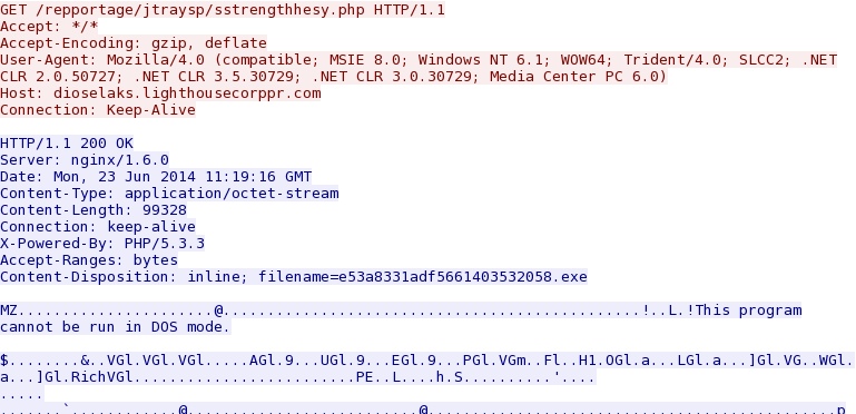 - 18:59:14 UTC - 46.21.159[.]163:80 - dioselaks.lighthousecorppr[.]com - GET /repportage/jtraysp/yplayedu.js