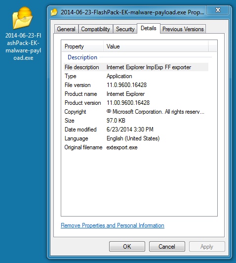 File name: 2014-06-23-FlashPack-EK-malware-payload.exe