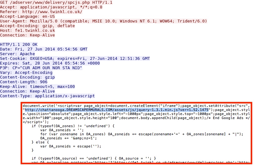 - 05:54:55 UTC - 162.13.101[.]226:80 - fe1.twinkl[.]co[.]uk - GET /adserver/www/delivery/spcjs.php