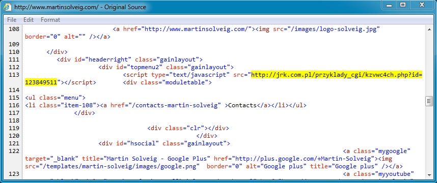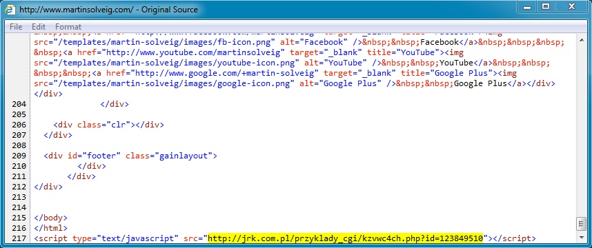 Javascript from www.martinsolveig[.]com pointing to the fake Flash notification on jrk[.]com[.]pl: