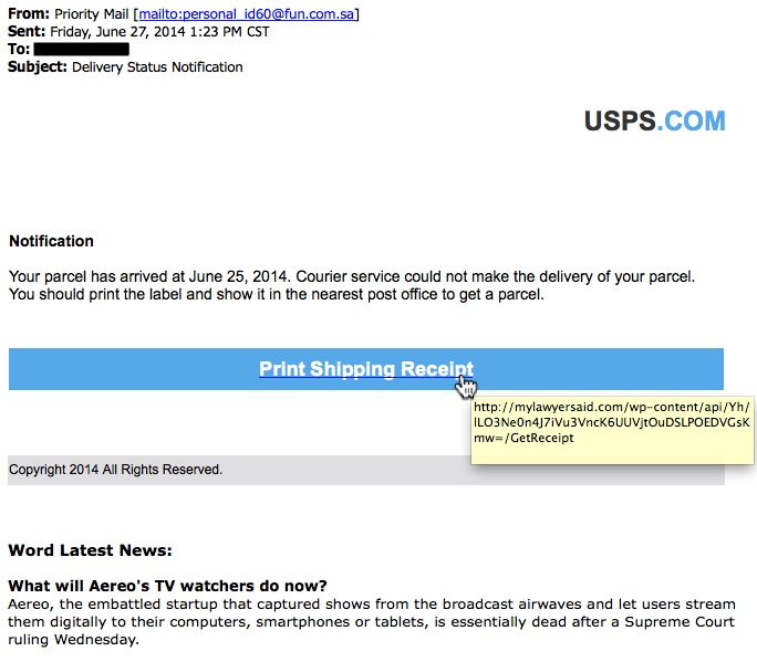 - 2014-06-27 email: mylawyersaid[.]com - GET /wp-content/api/Yh/ILO3Ne0n4J7iVu3VncK6UUVjtOuDSLPOEDVGsKmw=/GetReceipt