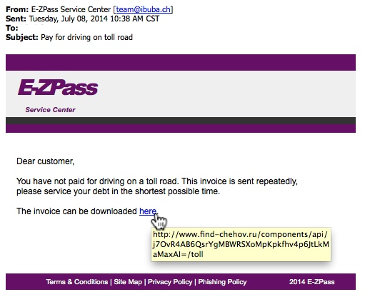 You have not paid for driving on a toll road. This invoice is sent repeatedly,