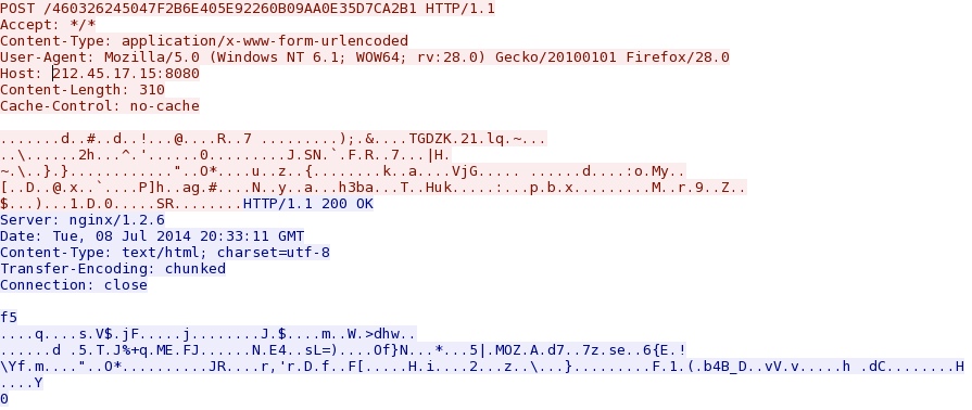 2014-07-08 20:34 UTC - 212.45.17[.]15:8080 - 212.45.17[.]15:8080 - POST /460326245047F2B6E405E92260B09AA0E35D7CA2B1