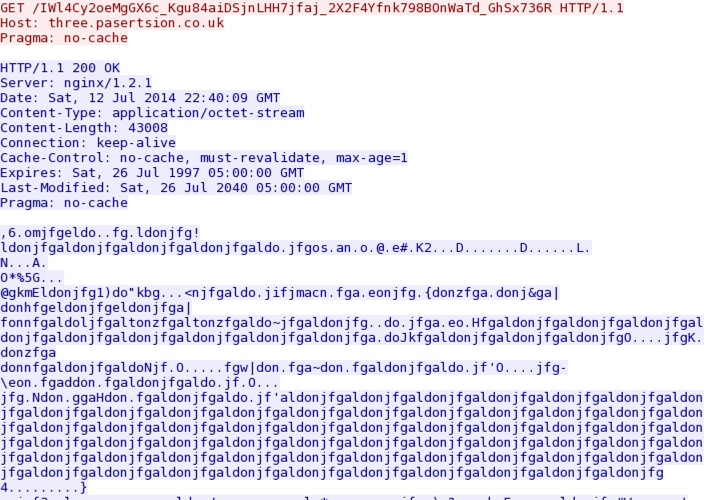 - 2014-07-12 22:41:13 UTC - 192.200.105[.]130:80 - ET CURRENT_EVENTS Angler EK encrypted binary (1) Jan 17 2013 (sid:2017984)