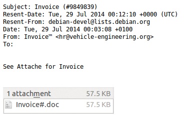 - The attachment, a malicious Word document, was first noted on 2014-07-10.