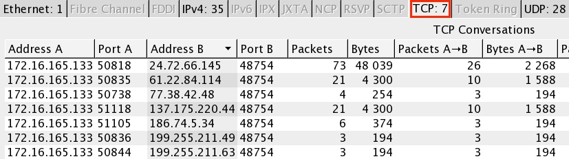 The TCP traffic (encrypted or otherwise obfuscated) is also using port 48754: