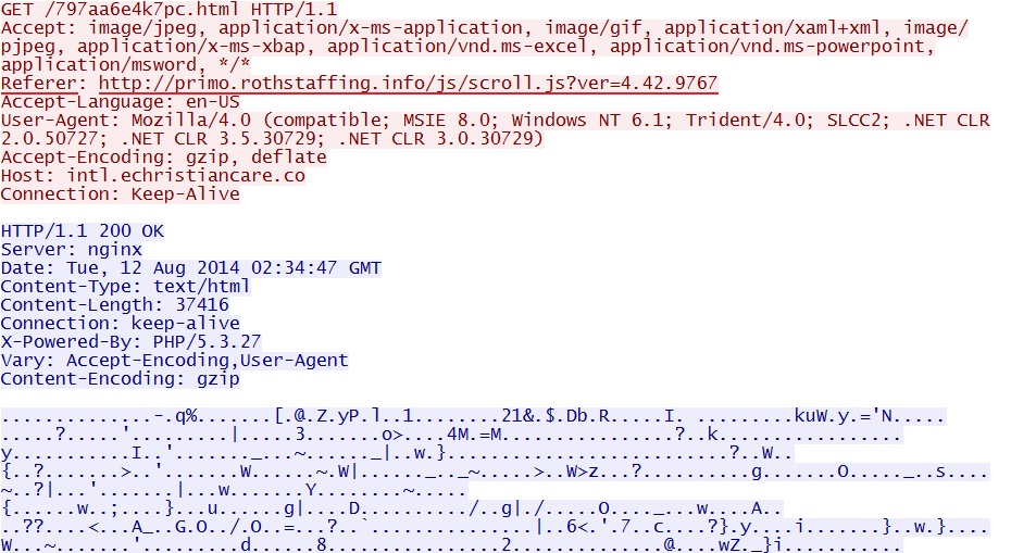 - 2014-08-12 02:34:35 UTC - 94.229.64[.]231:80 - intl.echristiancare[.]co - GET /797aa6e4k7pc.html