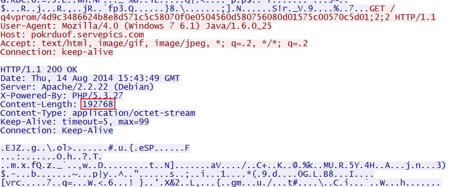 - The Java exploit sends the 2 malware payloads separately, but all other exploits combine the payloads into a single encrypted stream (see screenshots section).