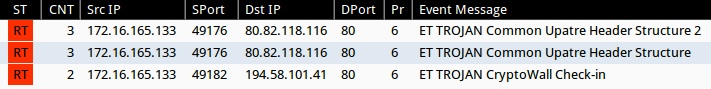 - 15:30:41 UTC - 194.58.101[.]41:80 - [1:31450:1] MALWARE-CNC Win.Trojan.CryptoWall outbound connection attempt
