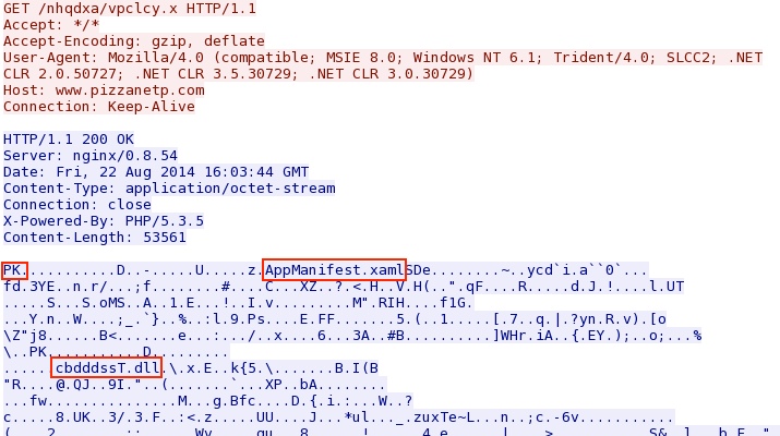 - 2014-08-22 16:03:44 UTC - 76.74.157[.]161:80 - www.pizzanetp[.]com - GET /nhqdxa/vpclcy.x [Silverlight exploit]