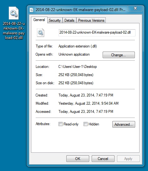 File name: 2014-08-22-unknown-EK-malware-payload.dll